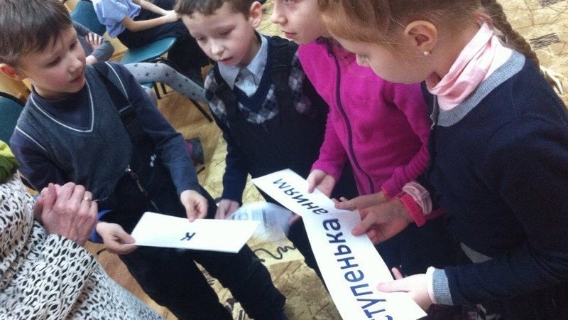 С жителями Букваринска первоклассники играли в игры: «Узнай букву», «Какая буква убежала», «Составь пословицу».