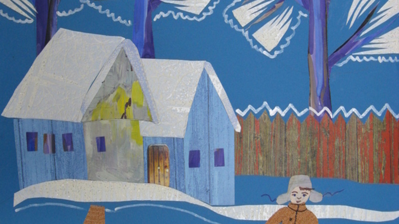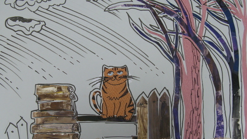 Необычные рисунки по стихам С.Я. Маршака «Круглый год», выполнены в разных техниках, где нашли соединение: бумага и ткань, обои, аппликация, гуашь и тушь. Рисунок и прикладное искусство вместе.