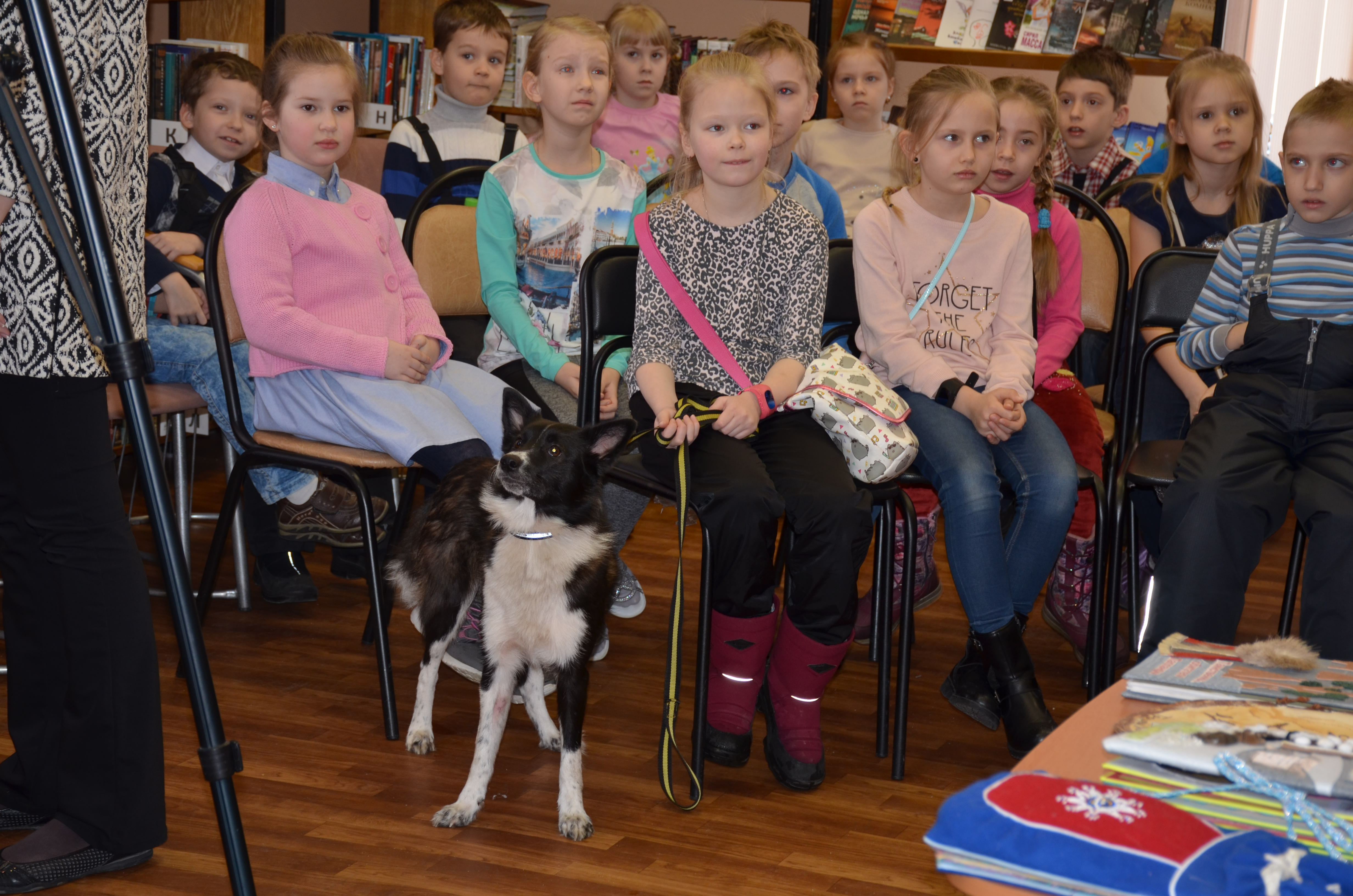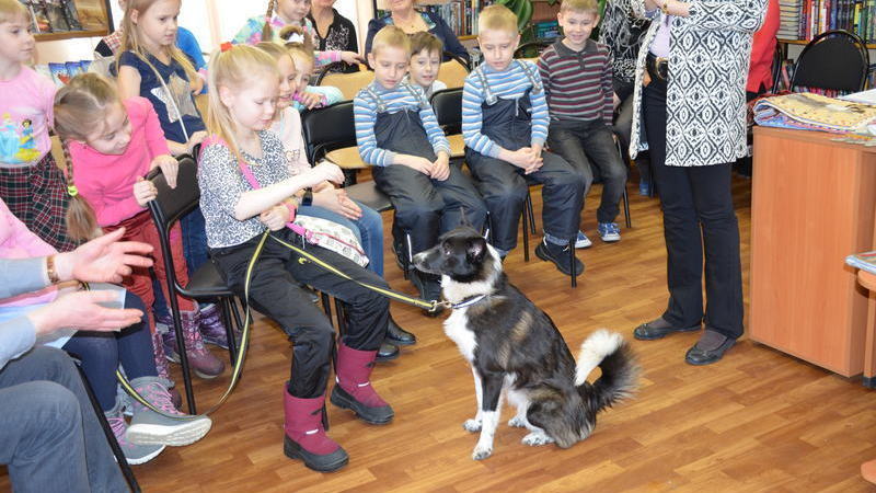 Во время занятия состоялась прямая трансляция с Городской детской библиотекой имени Е.С. Коковина Централизованной библиотечной системы г. Архангельска. Это был обмен опытом библиотечных канис-проектов. Архангельских коллег заинтересовала данная форма канис-занятия по приобщению детей к чтению.