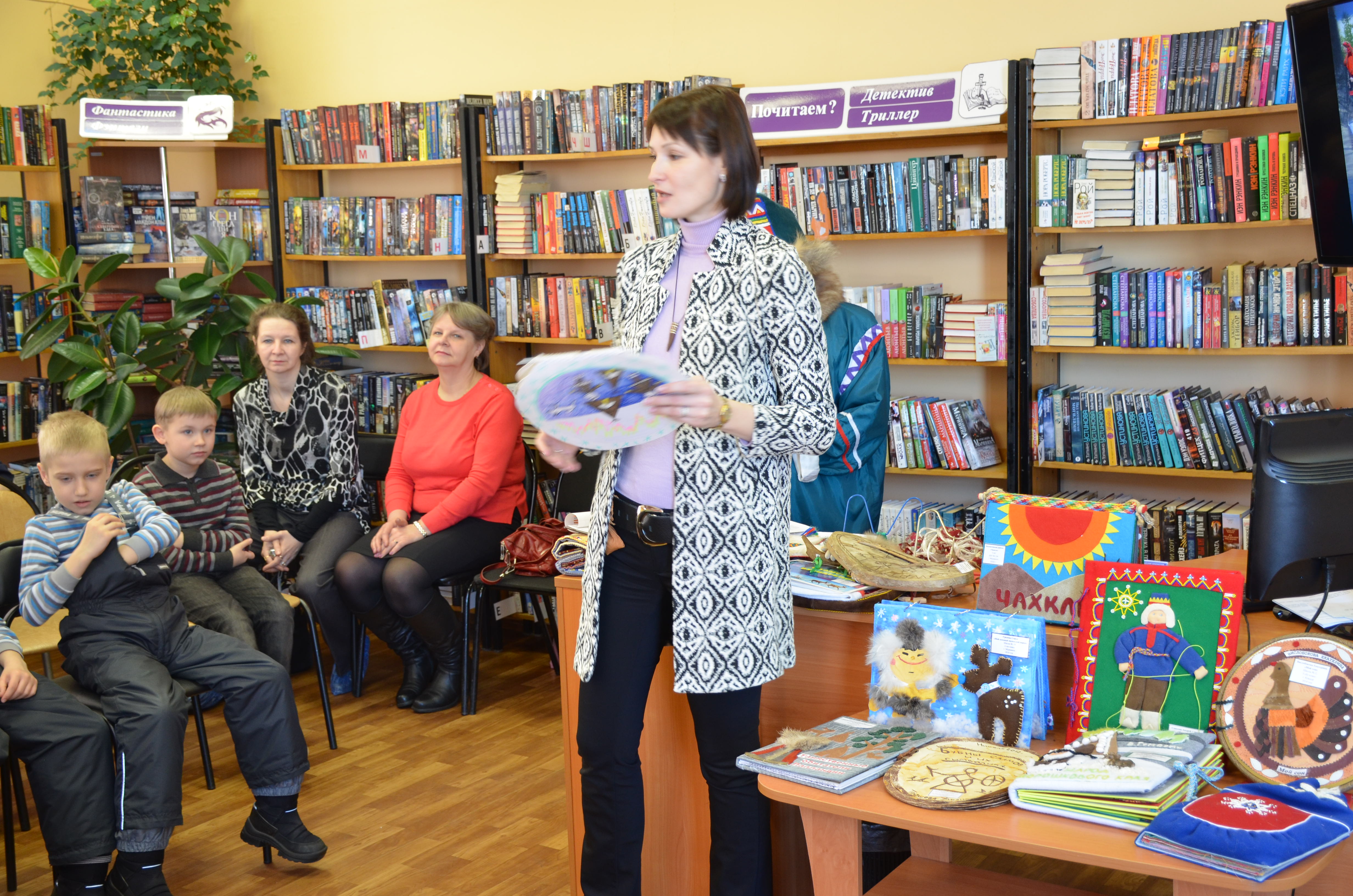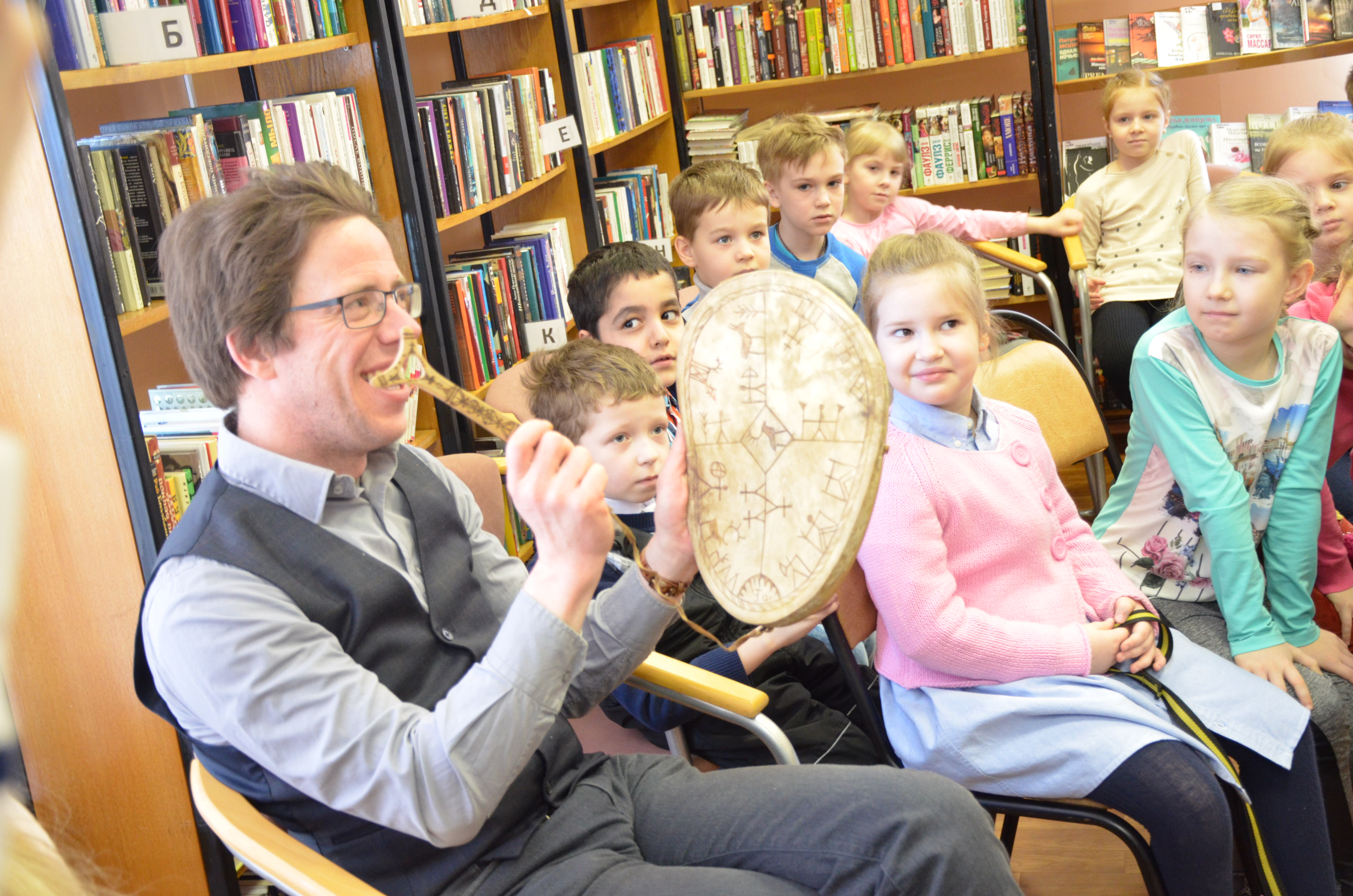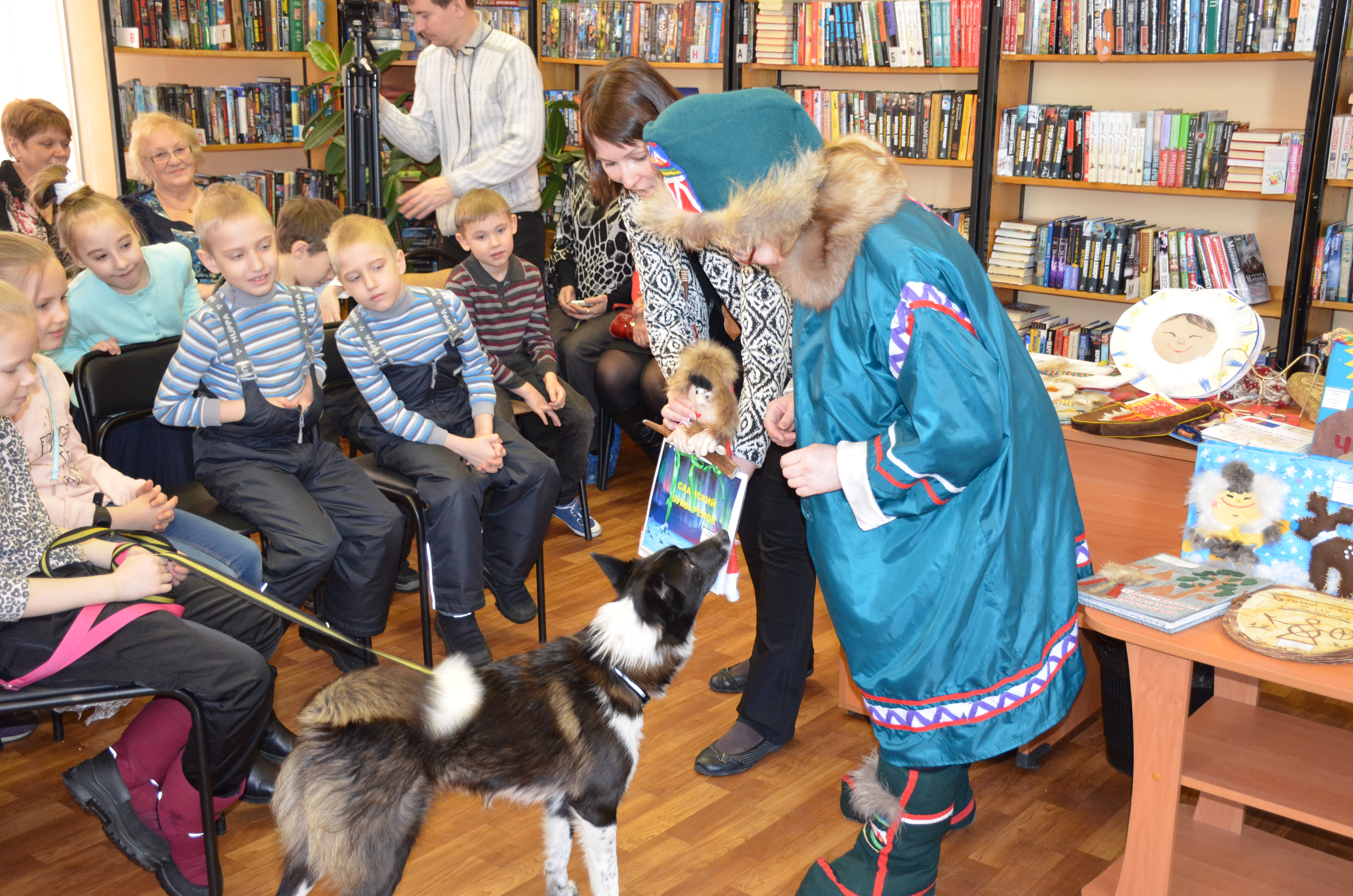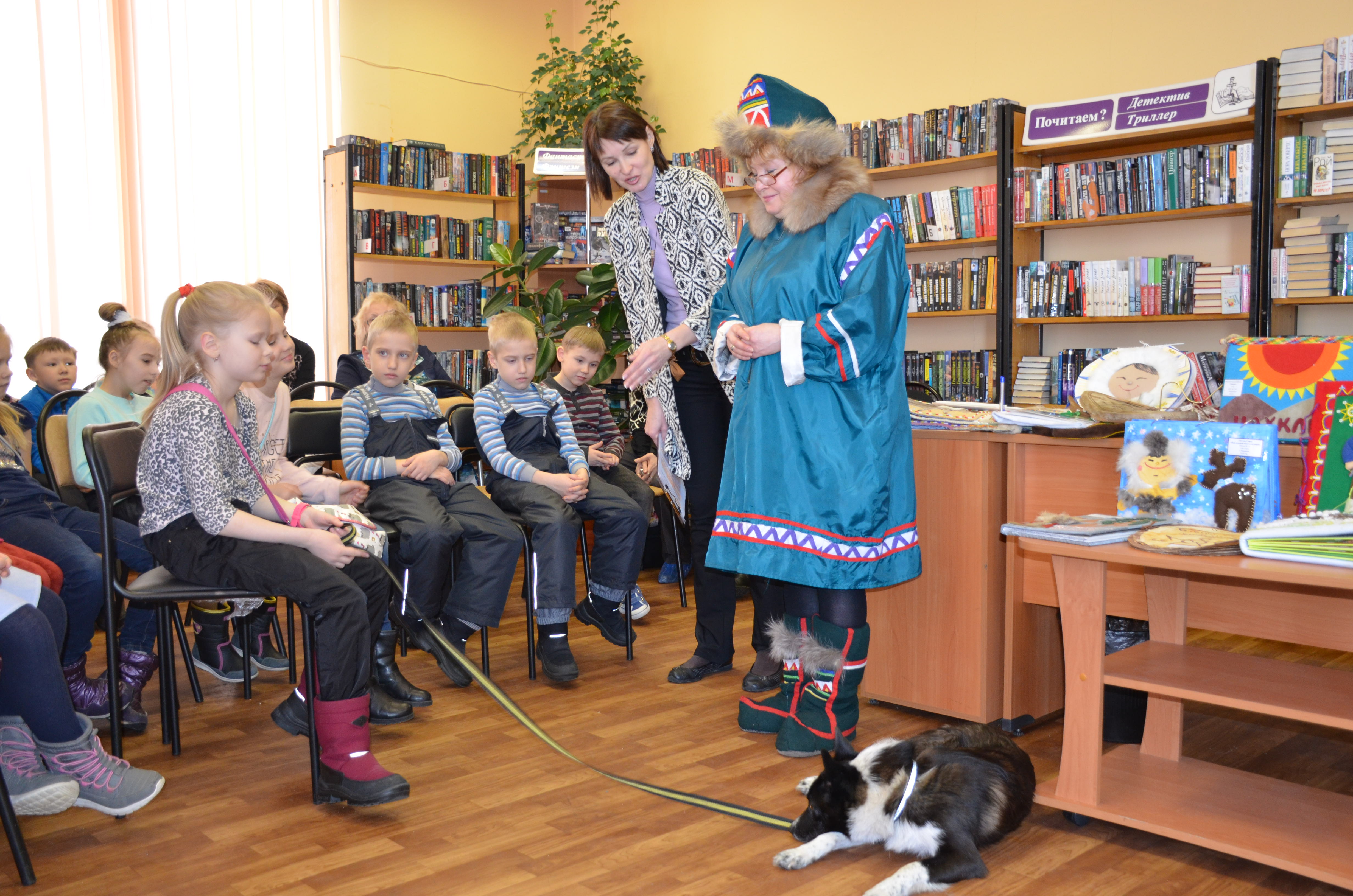 Гости мероприятия – обучающиеся из 1 «А» класса гимназии №5 узнали об особенностях жизни, быта и культуры саамского народа, который проживают на территории четырех государств: Россия, Норвегия, Финляндия и Швеция. Детям рассказали, почему саамов называют детьми Ветра и Солнца, а также о важной роли собак в жизни саами. Гости мероприятия познакомились с тотемными животными: медведем, волком, оленем, спели саамские песни под звук шаманского бубна, поиграли в саамские игры, послушали громкое чтение рукописных книг о саамских собаках.
