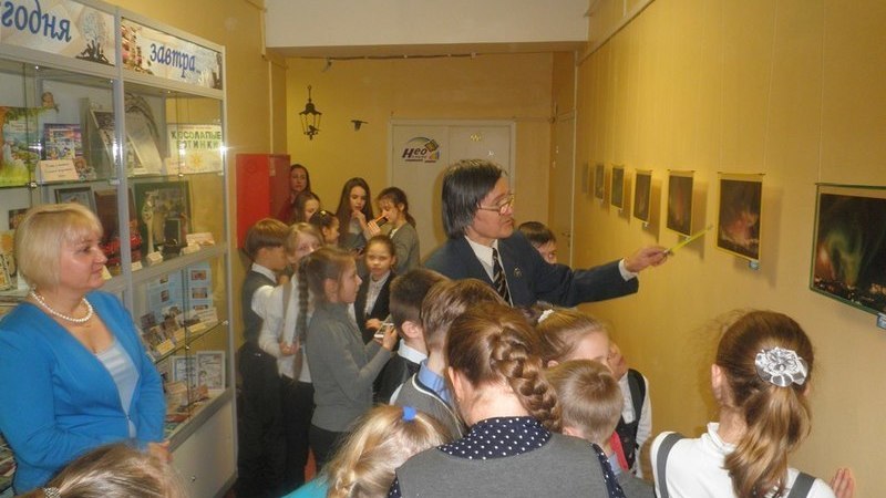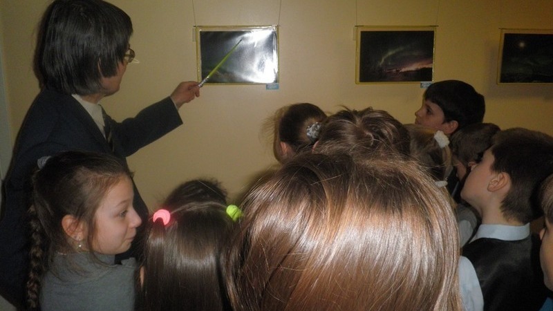 Гости познакомились с удивительными кадрами самого магического, непредсказуемого небесного свечения – северного сияния. Эти удивительные снимки были сделаны автором с Вороньей сопки и горы Горелой в городе Мурманске. Со слов автора выставки все фотографии отличаются друг от друга, и каждое изображение северного сияния имеет свое название: «Сатурн – рождение», «Сатурн смерть», «Дружная семья», «Космическое шоссе», «Рапсодия», «Пришелец», «Гимн Прекрасному», «Красное Зарево» и другие.