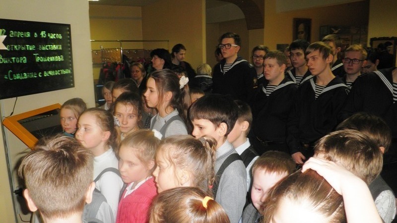 К 100-летию города Мурманска у Виктора Евгеньевича Трошенкова вышел сборник стихов «Планета Мурманск» и юные гости выставки с удовольствием прочитали стихи автора.