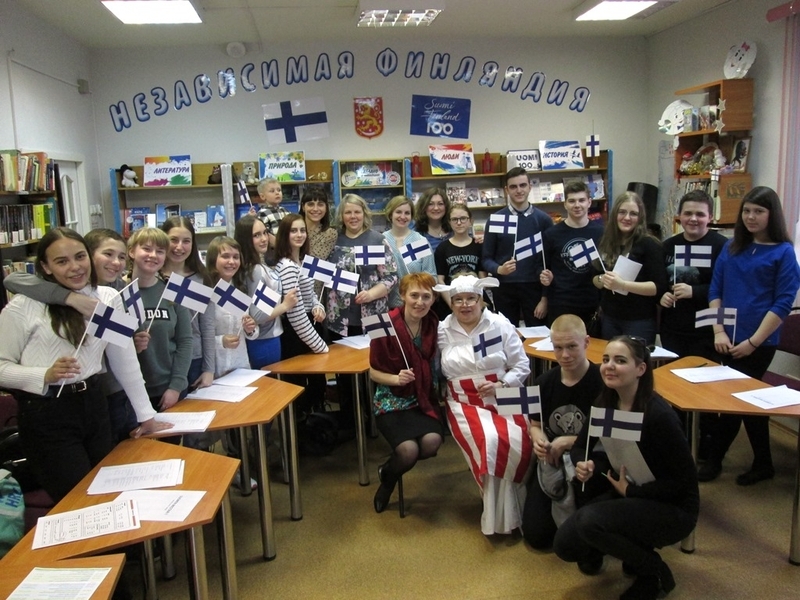 В секторе литературы на иностранных языках весело и познавательно прошло путешествие в Финляндию, участники которого познакомились со страной Суоми с помощью выставки «Независимая Финляндия». А началось оно с мини-урока финского языка, который любезно провела сотрудник Мурманского отделения Генерального консульства Финляндии в Санкт-Петербурге Татьяна Яшинькина. Ребята с интересом окунулись в усвоение новых слов и выражений, познакомились с правилами чтения и ударения, смогли прочитать диалоги. А на прощание все вместе спели песню на финском языке. Муми-мама, заботливая героиня финской сказочницы Туве Янссон, провела викторину «100-летний юбиляр», посвященную городу Мурманску и стране Финляндии. Дети активно отвечали на все вопросы. И в подарок получили финские флажки.