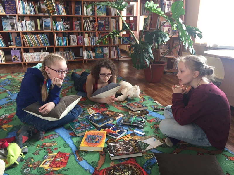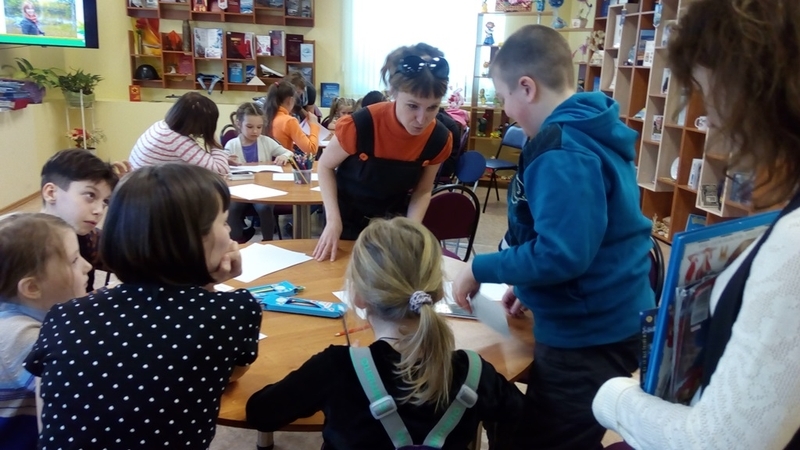 Кроме того, дети приняли участие в увлекательном фотоквесте, где должны были найти и сфотографировать специально подготовленные картинки – уменьшенные обложки книг от «Росмэн». Коридор, ведущий к абонементу, преобразился в интерьер романа Мариам Петросян «Дом, в котором...». На стенах красовались части большого стенда-декорации, которые были сделаны специально для фестиваля «Поларкон», – и вот теперь ими смогли полюбоваться и наши читатели.
