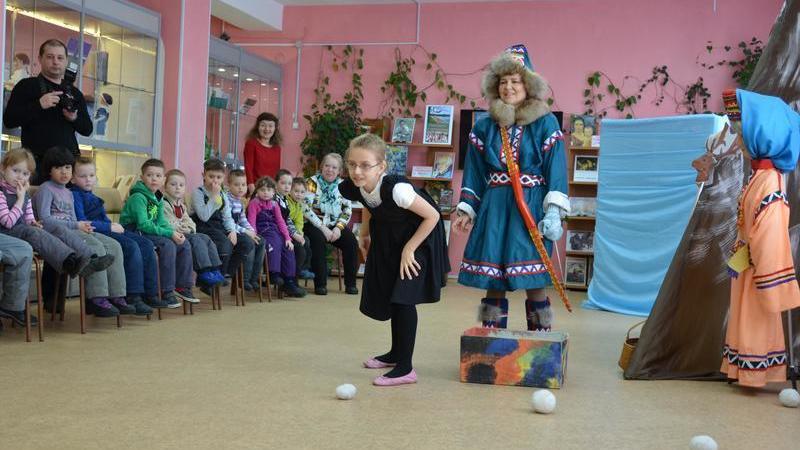 Дети с интересом слушали увлекательный рассказ с медиапрезентацией о жизни и быте саамского народа. Кувакса, очаг, национальные костюмы саамских кукол наглядно продемонстрировали самобытность северного народа. Принимая участие в подвижных играх, соревнованиях, эстафетах, зрители почувствовали себя настоящими охотниками, рыболовами, детьми природы, ведь саамы вырабатывали ловкость и находчивость с самого детства. И конечно, чтение сказки финского писателя Сакариаса Топелиуса, знакомство с Сампо-Лопаренком позволило окунуться в литературный мир Лапландии.
