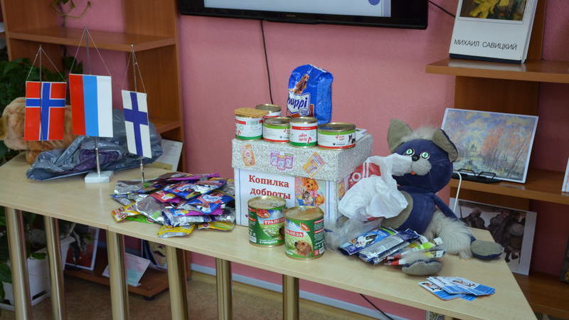 В завершении мероприятия школьники внесли вклад в копилку доброты, подарили животным Фонда корм. А Финское консульство передало целый мешок игрушек-погрызушек. Ведь у госпожи консула Пирко Мякикоккила живет ранее подобранный пес Койрик и она знает, как тяжело живется бездомышам без любви и заботы.