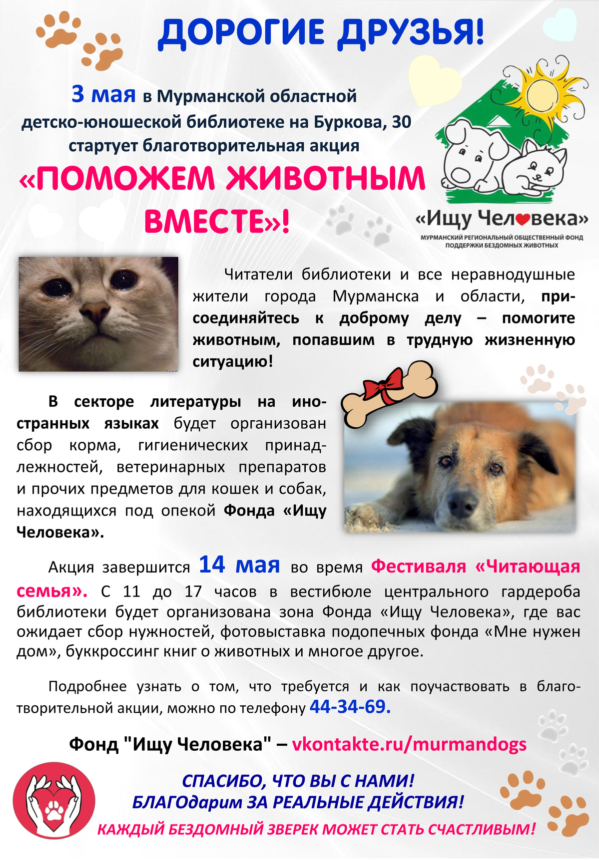 Читатели библиотеки и все неравнодушные жители города Мурманска и области, при-соединяйтесь к доброму делу – помогите животным, попавшим в трудную жизненную ситуацию!