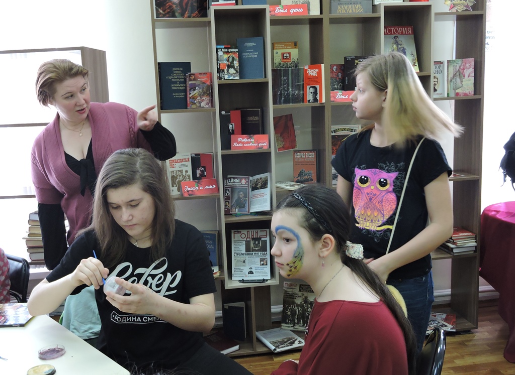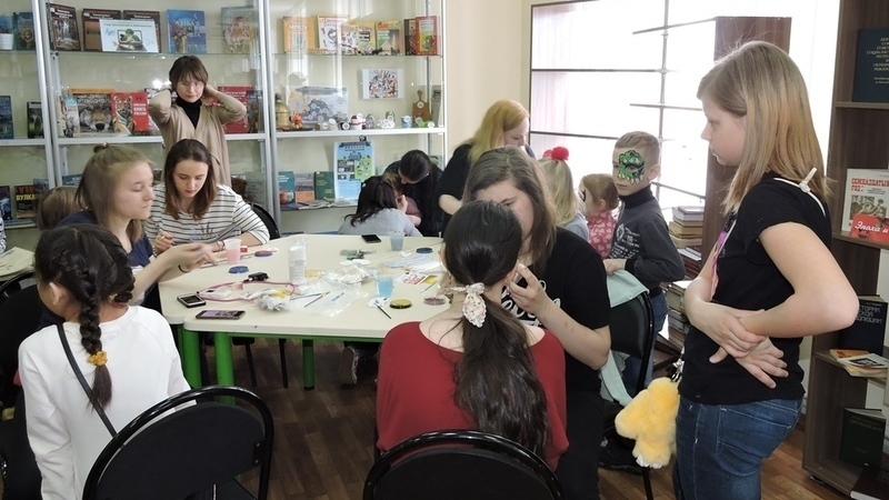 В читальном зале отдела библиотечного обслуживания обучающихся 1-4 классов для детей и их родителей был организован мастер-класс по работе с уникальным конструктором «Фанкластик». Кроме того, был проведен курс ментальной арифметики от Центра развития интеллекта «Пифагорка». А на абонементе отдела работали сотрудники детской театральной школы и превращали лица детей в мордочки забавных зверюшек.