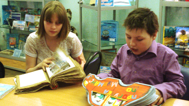Большой интерес вызвали у детей рукописные книги участников Международного конкурса детской рукописной книги.