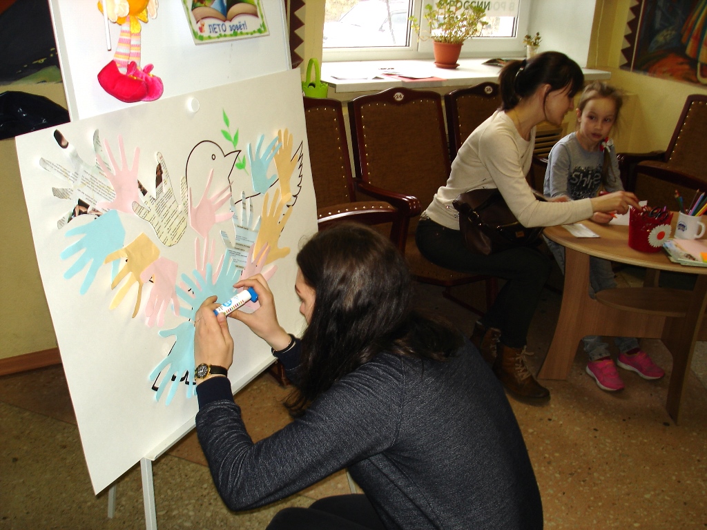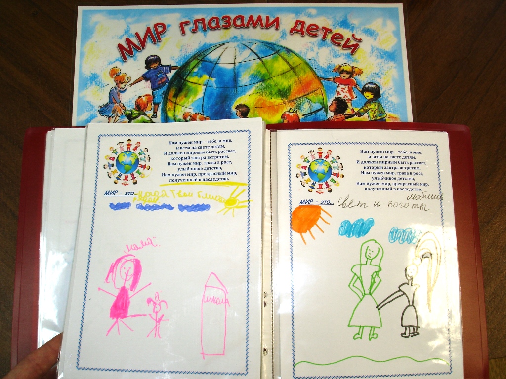 Участники акции стали создателями коллективной книги «Мир глазами детей». На специально подготовленных страничках они рисовали свое представление о мире. И это – солнце, деревья, растения, радуга, портреты родных и многое другое.