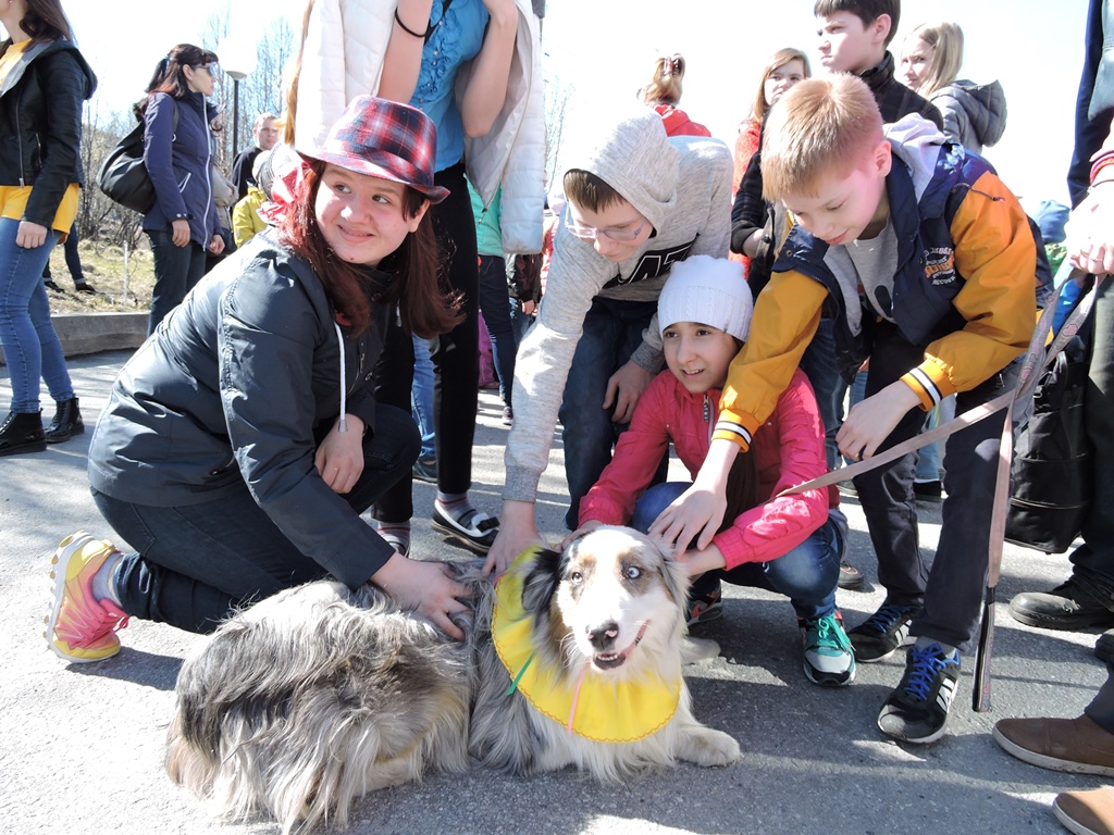 Перед праздником состоялась встреча читателей библиотеки с членами Клуба кинологов и канистерапевтов «Романов на Мурмане», которые пришли вместе со своими четвероногими друзьями.