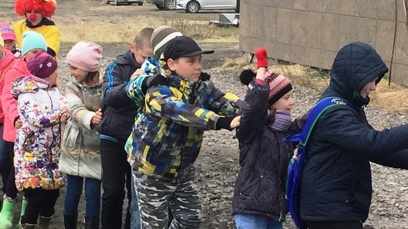 Вместе с ведущими и веселым клоуном Капитошкой ребята отправились в увлекательное путешествие по городам Мурманской области на волшебном паровозике «Букашка».