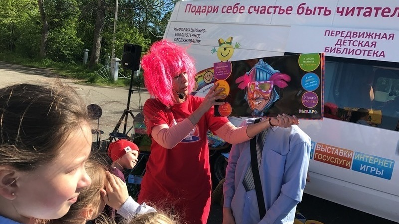Горожан порадовало яркое солнце, а позитивное настроение привезли с собой сотрудники библиотеки.