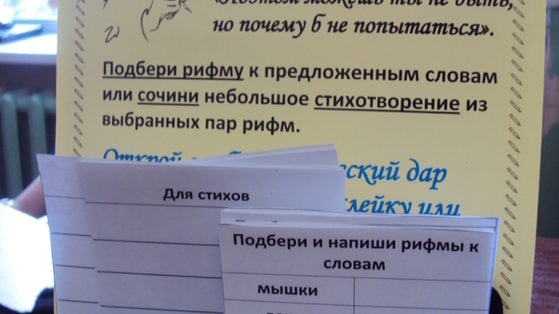 Это девиз акции «Проба пера», проходившей в летние дни в Кольской центральной детской библиотеке. В течение трех дней юные читатели пробовали свои силы в стихотворном жанре, сочиняли небольшие стихотворения на выбранную тему. В помощь юным «поэтам» предлагалась подборка с готовыми рифмами, а для вдохновения – лучшие образцы поэтического искусства. Самые маленькие подбирали рифмы к словам на карточках. Ребята постарше сочиняли сами. Посетители с удовольствием участвовали в акции, получалось не у всех и не сразу, но ведь и Пушкин сочинял свои шедевры не за 10 минут!