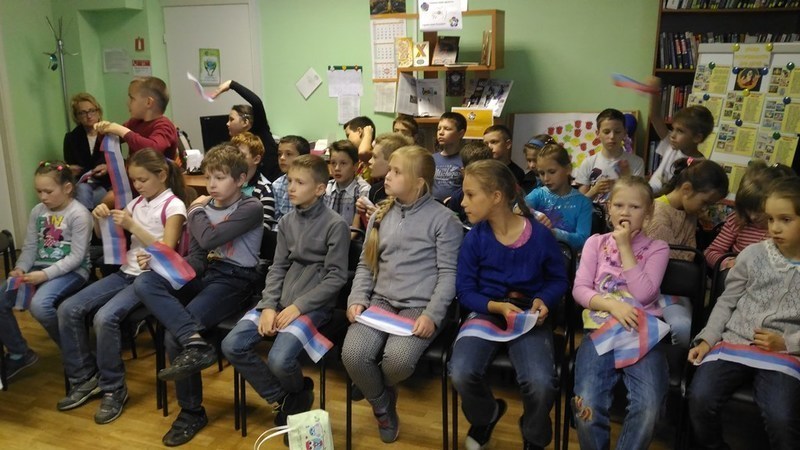 Прекрасная погода позволила провести для юных мурманчан игру-эстафету «Россия – вперед!» на ловкость, быстроту, умение работать в команде. Встреча завершилась конкурсом рисунков на асфальте и мини–флешмобом. Участники составили флаг Российской Федерации из шаров красного, синего и белого цвета. Эта встреча еще раз показала – каждый человек может ощутить себя частью сильной державы и гордиться, что мы дети Великой России!