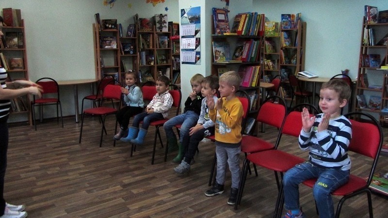 Маленькие читатели с увлечением угадывали, что добавляют в тесто, играя в подвижную игру «Топаем, хлопаем», и дружно научились печь колобков во время веселой физминутки «Пекарь».