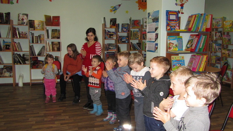 Маленькие читатели с удовольствием участвовали в веселых конкурсах и танцах, отгадывали загадки о сказочных героях, с увлечением читали и играли с книгами! А с книгой-театром даже сами разыграли сказку «Теремок»!