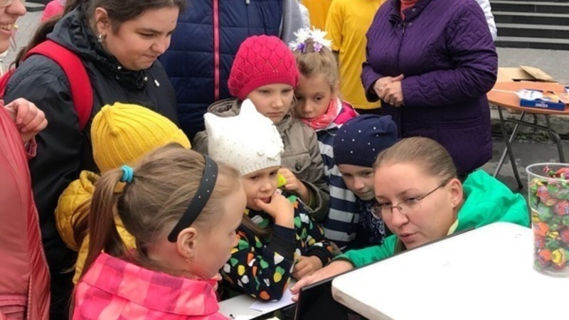Передвижная детская библиотека распахнула свои двери для всех желающих. Пришедшие на праздник дети вместе со своими родителями приняли участие в мероприятиях, которые предлагали им сотрудники самых разных отделов библиотеки.