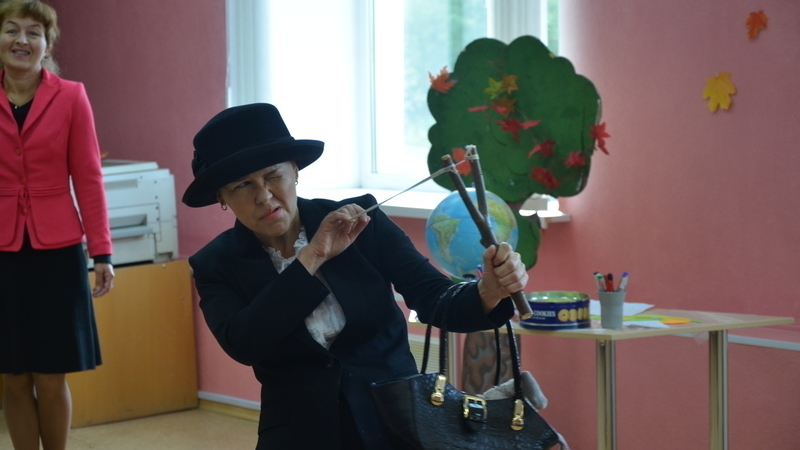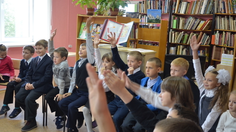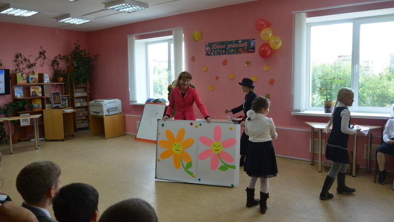 Для детей библиотекарями был проведен веселый праздничный урок, на котором они перевоплотились в героиню мультфильма Шапокляк и учительницу. Дети под веселую музыку отправились в страну знаний и выполняли задания на школьную тему. Помогали правильно собирать школьный рюкзак Шапокляк, отвечали на вопросы литературных викторин, проверяли себя на ловкость и собирали осенние листья, а в конце на уроке творчества изготовили своими руками в технике аппликации необычный цветок, который подарили своим педагогам. Праздничный урок прошел весело и увлекательно.