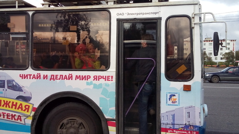 Четвероклассники мурманской школы №45 отправятся путешествовать по центру города на именном троллейбусе «Областная детско-юношеская библиотека», который вышел в свой первый рейс 12 апреля 2016 года от площади «Пять углов».