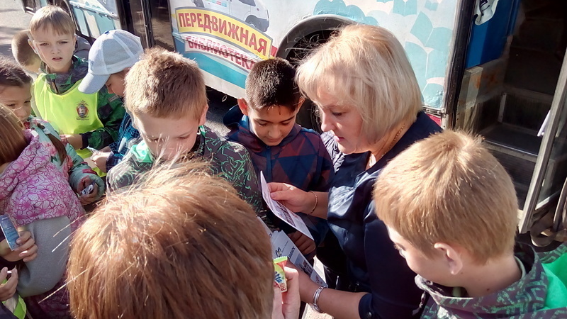 Чтобы дети не заскучали в дороге, ведущий библиотекарь Тациенко Элина Владимировна провела с ребятами викторину «Транспорт сказочных героев» и игру «Светофор», а также предложила им загадки о знаках дорожного движения.