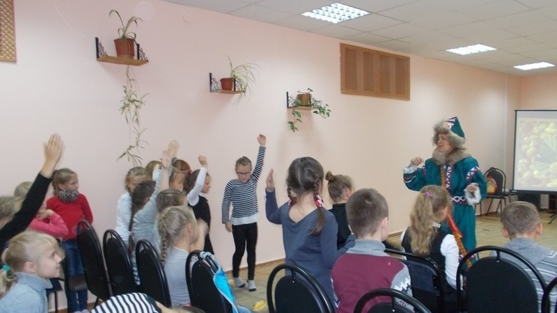 Второе – познавательно-игровое мероприятие «Сказки Лапландии». Из презентации ребята узнали о коренных народах Севера саами. Библиотекарь приоткрыла страницы истории северного народа, рассказала о национальном костюме, обычаях и традициях. Все вместе совершили виртуальное путешествие по тундре и остановились в Лапландии, где ребят ждала встреча с героем книги Сампо. Он пригласил ребят в тундру поиграть, но этому помешал злой великан Хийси. Сампо и ребята выполняли все его задания: на проверку ловкости, меткости и находчивости. Дети увлеченно играли в разные игры: отгадывали северные ягоды среди других, как опытные следопыты искали следы северных зверей, ловили рыбу, мчались на оленях. Ребята и Сампо победили злого великана, но главное – прочитали отрывок из интересной книги.