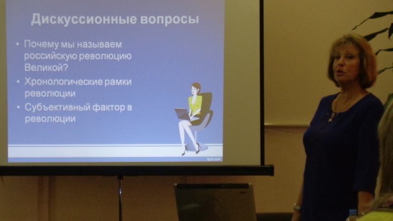 В работе семинара приняла активное участие Белугина Галина Николаевна, методист городского Информационно-методического центра работников образования областного центра. Концептуальная консультация «Изучение периода Великой русской революции в школьной программе и как представлен этот период в учебниках разных издательств» была построена на современных требованиях к обучению школьников и обновлению содержания учебников. Проведен сравнительный анализ учебников в соответствии с принятым историко-культурным стандартом. Обозначены трудные темы, трудные вопросы в изучении данного периода истории для школьников. И темы, к которым ребята сами проявляют интерес.