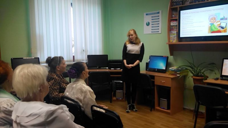 Гости библиотеки так же познакомились с электронным банком данных «Активная жизнь старшего поколения», в котором собрана полезная информация об учреждениях социального обслуживания, клубах, общественных организациях для данной возрастной категории. Особый интерес людей пенсионного возраста вызвала возможности работы на компьютере, в частности получение доступа к интернет-ресурсам, таким как Госуслуги и Пенсионный фонд РФ, а так же помощи сотрудников центра в оформлении учетной записи на данных сайтах. Их внимание и участие в разговоре в ходе мероприятия еще раз подтверждает – старшее поколение готово идти в ногу со временем!