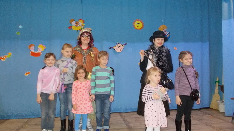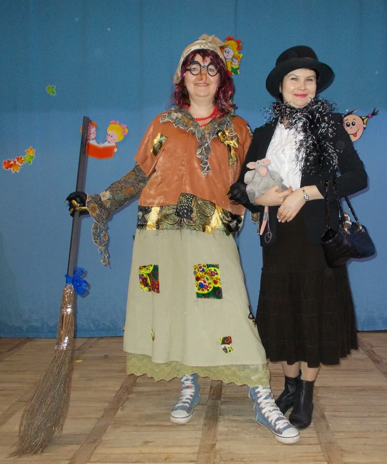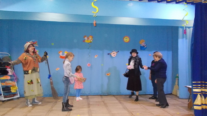 В гости к участникам праздника пришли литературные бабушки – Баба Яга и Шапокляк. Пришли не просто на праздник, а приготовили литературные загадки, веселые танцы и конкурсы. Малыши наводили порядок на сцене, ловко орудуя вениками, сортировали овощи, выбирая необходимые ингредиенты для приготовления борща, наряжали своих бабушек.