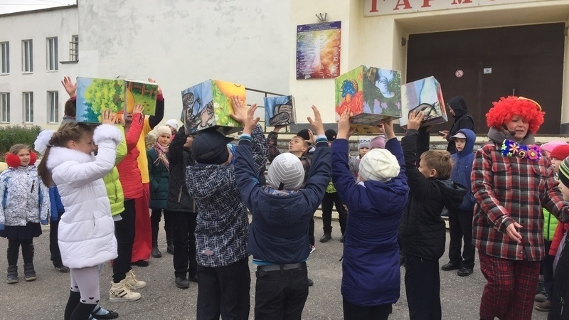На встречу с сотрудниками библиотеки пришли учащиеся 3-х классов. Их встретили неунывающие клоуны Пончик и Капитошка. После веселой разминки было принято решение отправиться в путь по городам и весям Кольского полуострова и посмотреть, чем не похожи друг на друга населенные пункты Мурманской области. Маршрут путешествия составляли дети вместе с библиотекарями. Получился он вот таким: Мурманск – Североморск – Апатиты – Молочный.