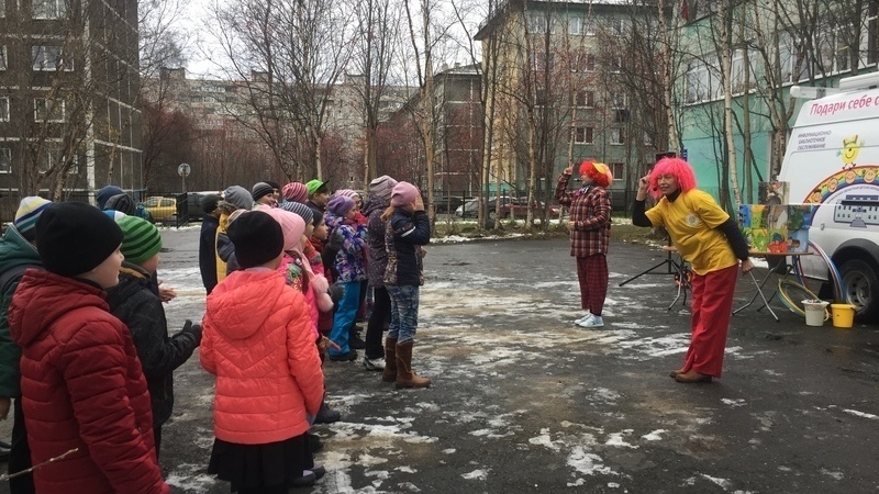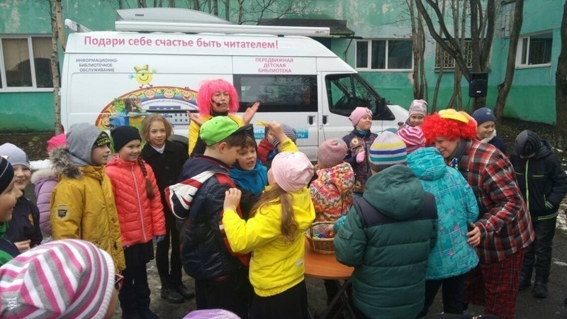 Для учащихся 3-4 классов школы №11 библиотекари Передвижной детской библиотеки подготовили познавательно-развлекательную игровую программу «Приглашаем всех друзей встретить Мурманской области юбилей». Это необычное путешествие по Мурманской области с остановками в самых крупных городах края. Началось путешествие в Краеведческом музее столицы Заполярья. На пути участников праздника ждали остановки в городах: Североморске, Апатитов, Кировске, Оленегорске.