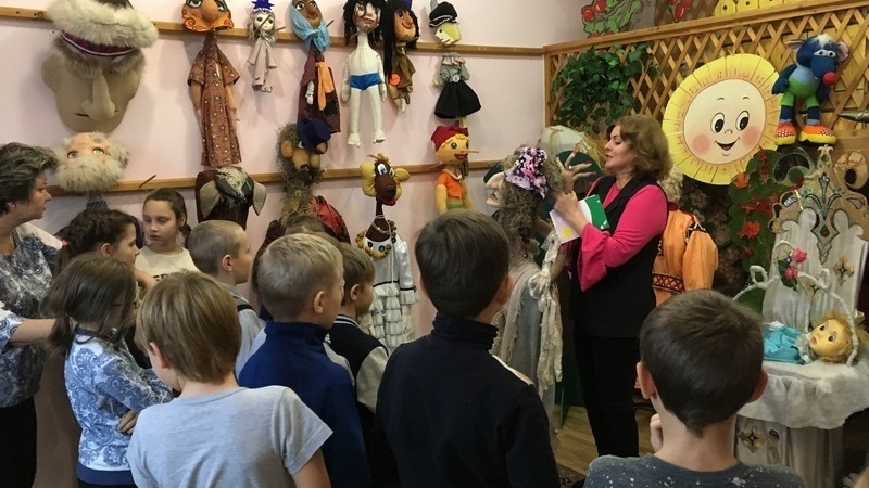 Школьники узнали об истоках кукольного театра, о самой известной и популярной кукле в России – Петрушке. Ребята познакомились с Музеем театральной куклы отдела искусства и творчества, узнали, чем куклы отличаются друг от друга, из чего они сделаны и как ими управлять. Ребята отгадывали загадки и попытались сами стать артистами, используя маски и куклы. В заключение встречи всех ждала фотосессия с рукотворными артистами из музея.