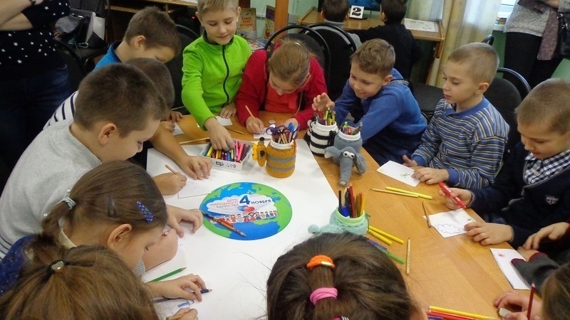 Юные читатели совершили виртуальное путешествие по Великой Руси. Познакомились с ее традициями, обычаями и многонациональной культурой. Узнали о великих страницах истории нашей Родины, об исторических событиях 1612 года, в память о которых был учрежден День народного единства. Вспомнили о подвиге Кузьмы Минина и князя Дмитрия Пожарского, а также символы государства Российского. В заключение ребята нарисовали коллективный плакат.