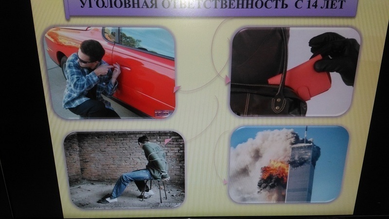 Электронная презентация помогла в усвоении таких юридических терминов как вина, умысел, неосторожность, вандализм. Для закрепления материала участники мероприятия ответили на вопросы викторины, разгадали кроссворд, с интересом посмотрели социальный ролик об уголовной ответственности за преступления и документальный фильм «Экскурсия в детскую колонию».
