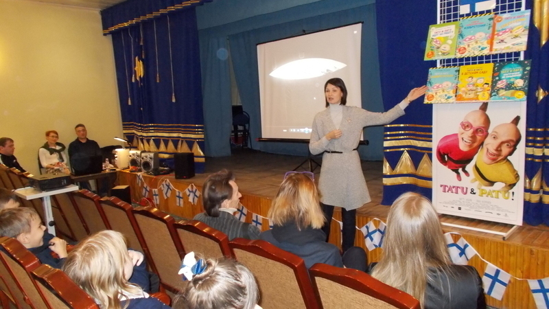 Юные зрители, обучающиеся 3 и 4 классов средней школы №53 города Мурманска, познакомились с творчеством финских писателей и иллюстраторов Айно Хавукайнен и Сами Тойвонен. Герои серии популярнейших в Финляндии и широко известных в Европе и России детских иллюстрированных книг, Тату и Пату, как пришельцы из космоса, для них все вокруг новое и неизведанное. Они открывают и изучают окружающие явления и предметы, изобретают новые. В программу Фестиваля вошел художественный фильм о приключениях этих братьев в канун Рождества. Перед показом фильма с приветственным словом выступила Сари Пёюхёнен, помощник консула по вопросам СМИ и культуры.