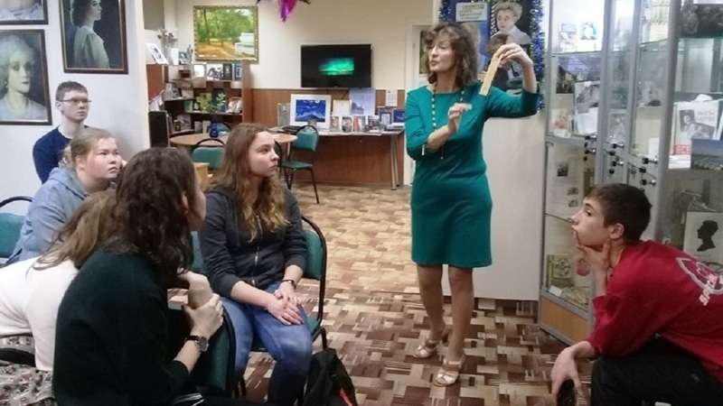 Одной из составляющей проекта – создание «Бюро юных экскурсоводов». Осваивая теоретические знания и практические умения в области музейного дела, ребята посетили общественный музей Сергея Есенина в Областной детско-юношеской библиотеке города Мурманска.