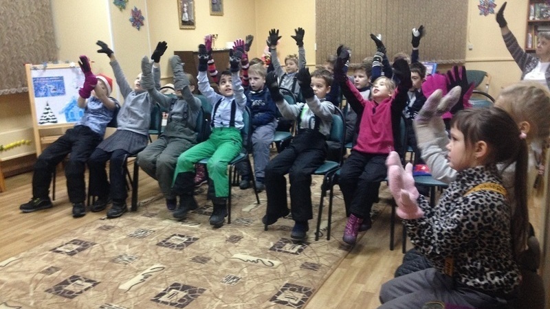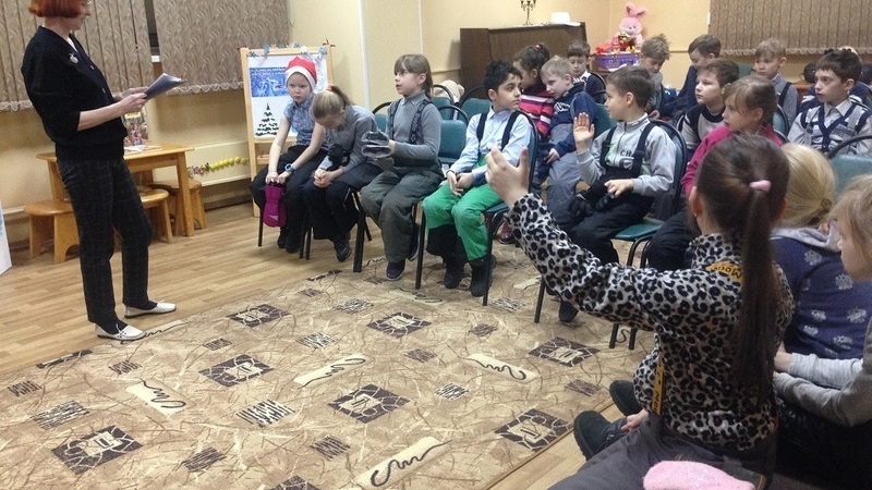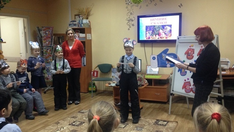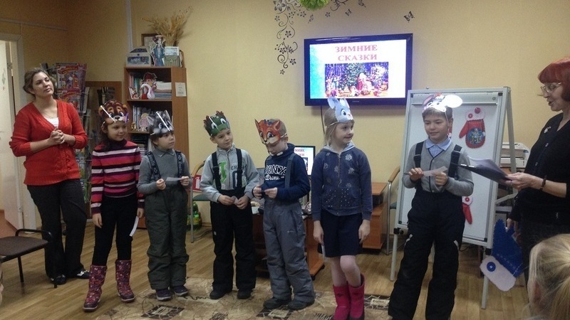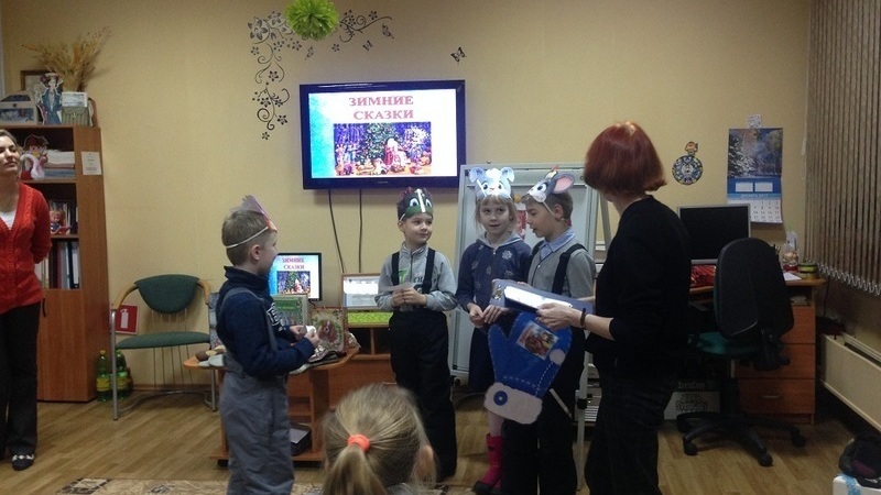 Под ёлкой юных читателей ждали волшебные варежки, у каждой из которых был свой сюрприз. Загадочная рукавичка заставила поломать головы над отгадыванием зимних загадок. В одной из варежек спрятался игрушечный щенок, как вестник наступающего Нового года Желтой собаки. Ребята с удовольствием исполнили танец под известную всем мелодию – «Собачий вальс». Театральная рукавичка вдохновила ребят перевоплотиться в героев украинской народной сказки «Рукавичка» и показать одноклассникам спектакль.