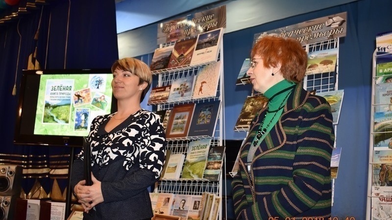 Заместитель директора Марина Владимировна Ёлкина и Елена Алексеевна Кочкуркина представили партнерский сборник «Зеленая книга природы Кольского полуострова глазами юных земляков», куда вошли рассказы, стихи, сказки и рисунки участников Международного конкурса детской рукописной книги в номинации «Стань природе другом».