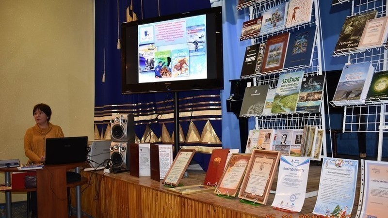 Главный библиотекарь краеведческого отдела Лариса Юрьевна Звонкова познакомила слушателей с новинками детской литературы. Это книги писателей Алексея Григорьева, Вадима Худякова, Бьёрна Оусланда о знаменитых путешественниках – покорителях Арктики. Также были представлены новые книги Олега Бундура «Под крышей одной» и «Заповедный кордон».