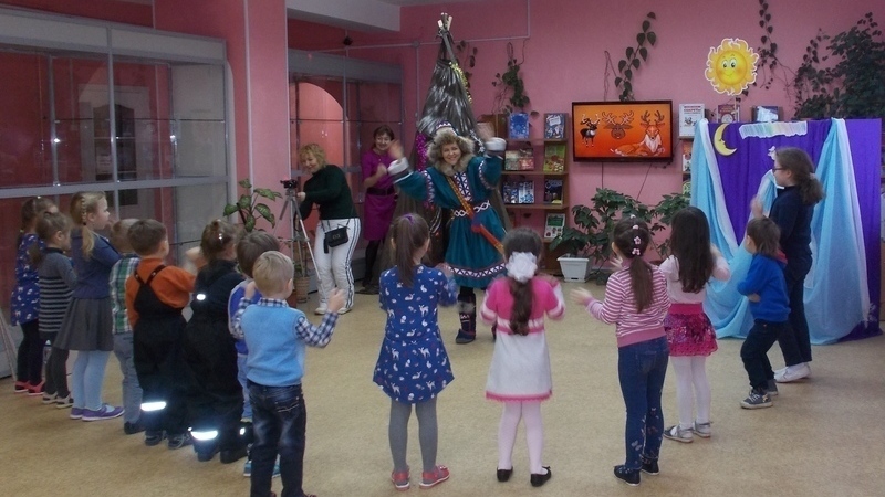 Библиотекарь прочитала несколько эпизодов из книги С. Топелиуса, и под звук шагов по снегу появился главный сказочный герой Сампо-Лопаренок. Вместе с Сампо ребята выполняли задания великана Хийси. Искали следы северных зверей, разыскивали северные ягоды, ловили рыбу, проверяли меткость и соревновались в гонках на оленях.