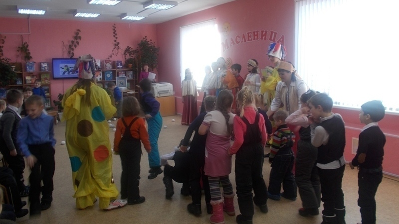 Гостей веселили скоморохи-студенты, волонтеры Мурманского педагогического колледжа. Они загадывали веселые «блинные» загадки, вспоминали «блинные» пословицы и угощали гостей конфетками и бараночками по русской ярмарочной традиции. Праздник для детей вместе с библиотекарями подготовили и провели участники ансамбля песни «Ягодка» средней образовательной школы №34 города Мурманска под руководством учителя музыки Бондаревской Н.В.