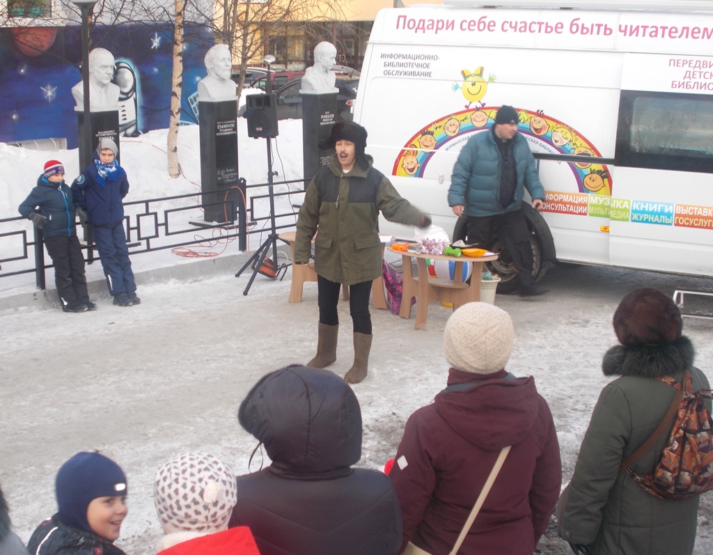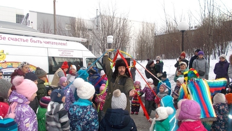 Передвижная детская библиотека тоже не осталась в стороне и приготовила для читателей библиотеки празднично-игровую программу «Масленицу встречаем – весну зазываем!». В гости к маленьким и большим мурманчанам пришел почтальон Печкин со своими литературными друзьями: веселым Снеговиком и котом Матроскиным.