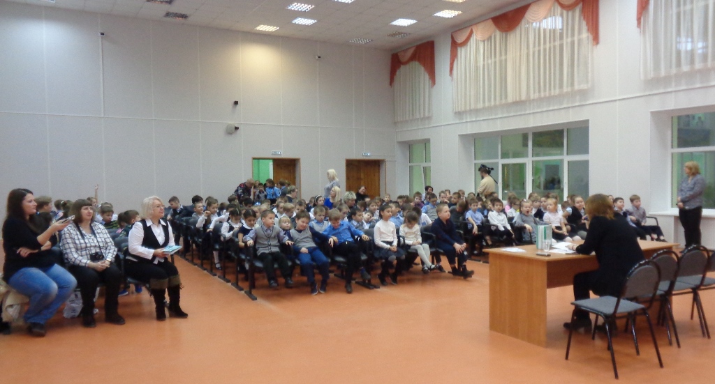 Молодая детская писательница, поэт и переводчик поделилась воспоминаниями о том, как были написаны книги «Кит плывет на север» и «Совиный волк». Рассказала о своей деятельности в качестве переводчика, прочитала свои школьные стихотворения. Юные жители городов внимательно и с интересом слушали увлекательное повествование гостьи.