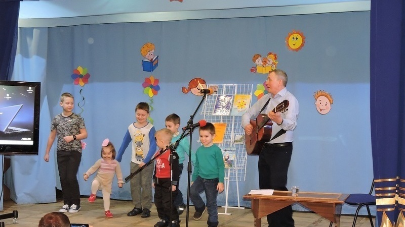 Открыли концерт словами из стихотворения Олега Семеновича Бундура про семью, именно этот день шел под девизом: «Всей семьей в библиотеку!». Александр познакомил ребят со своим творчеством, загадывал загадки с которыми дети легко справлялись. Была веселая импровизация марш солдат, ведь совсем недавно прошел праздник День защитника Отечества. Было приятно, что на сцену с ребятами поднялась маленькая девочка, которая с гордостью маршировала с мальчишками под песню «Солдат».
