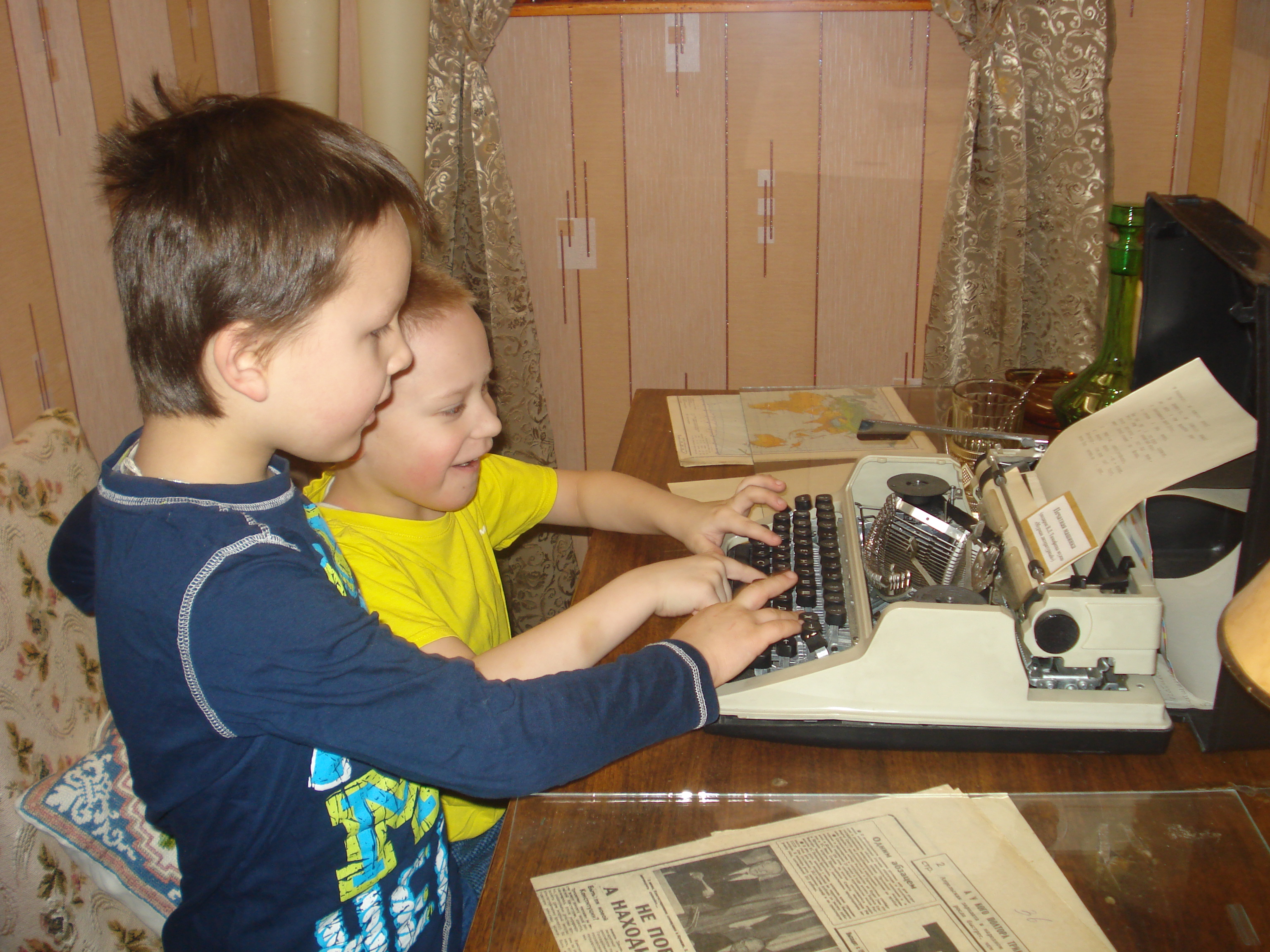 В кабинете писателя при музее «Мурман литературный» ребята имели возможность поработать за столом самого настоящего писателя и попробовать напечатать текст на старинной печатной машинке, принадлежавшей ранее известному мурманскому поэту Виктору Леонтьевичу Тимофееву.