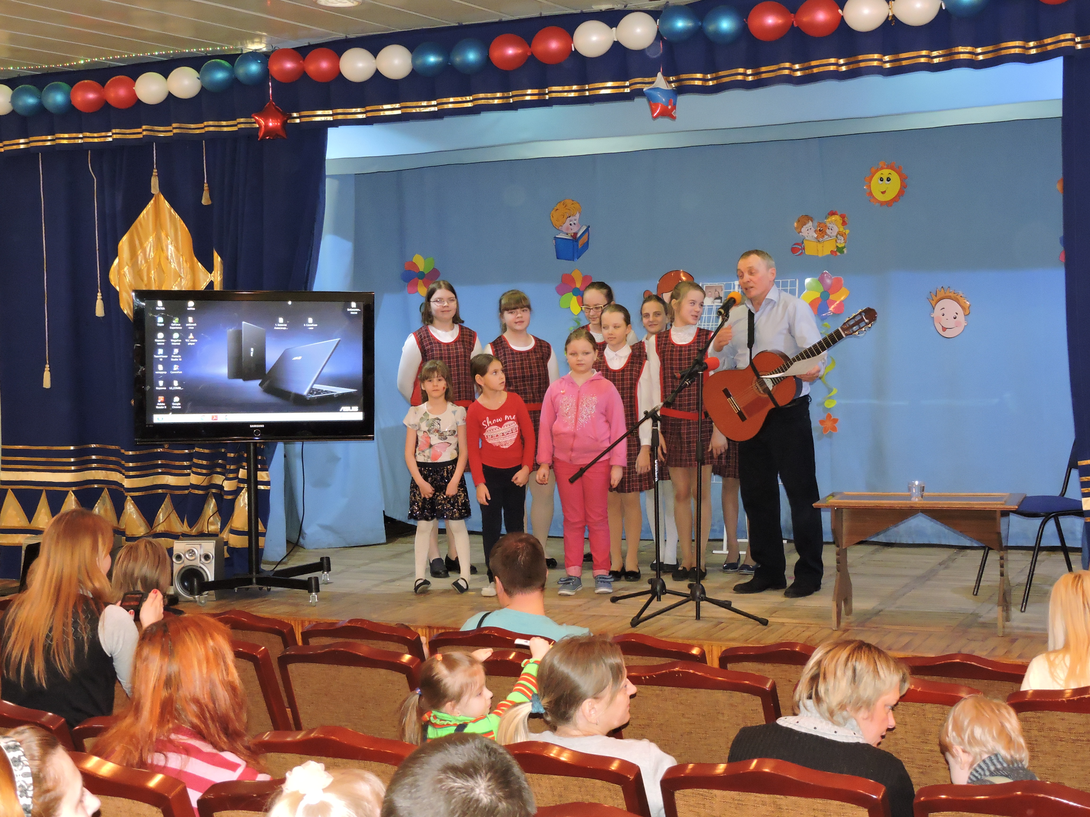 Продолжился праздник творческой встречей с давним другом библиотеки мурманским бардом, поэтом и композитором Александром Базановым. С большим желанием и позитивным настроем дети и взрослые приняли активное участие в интерактивной познавательно-развивающей программе «Веселые нотки».