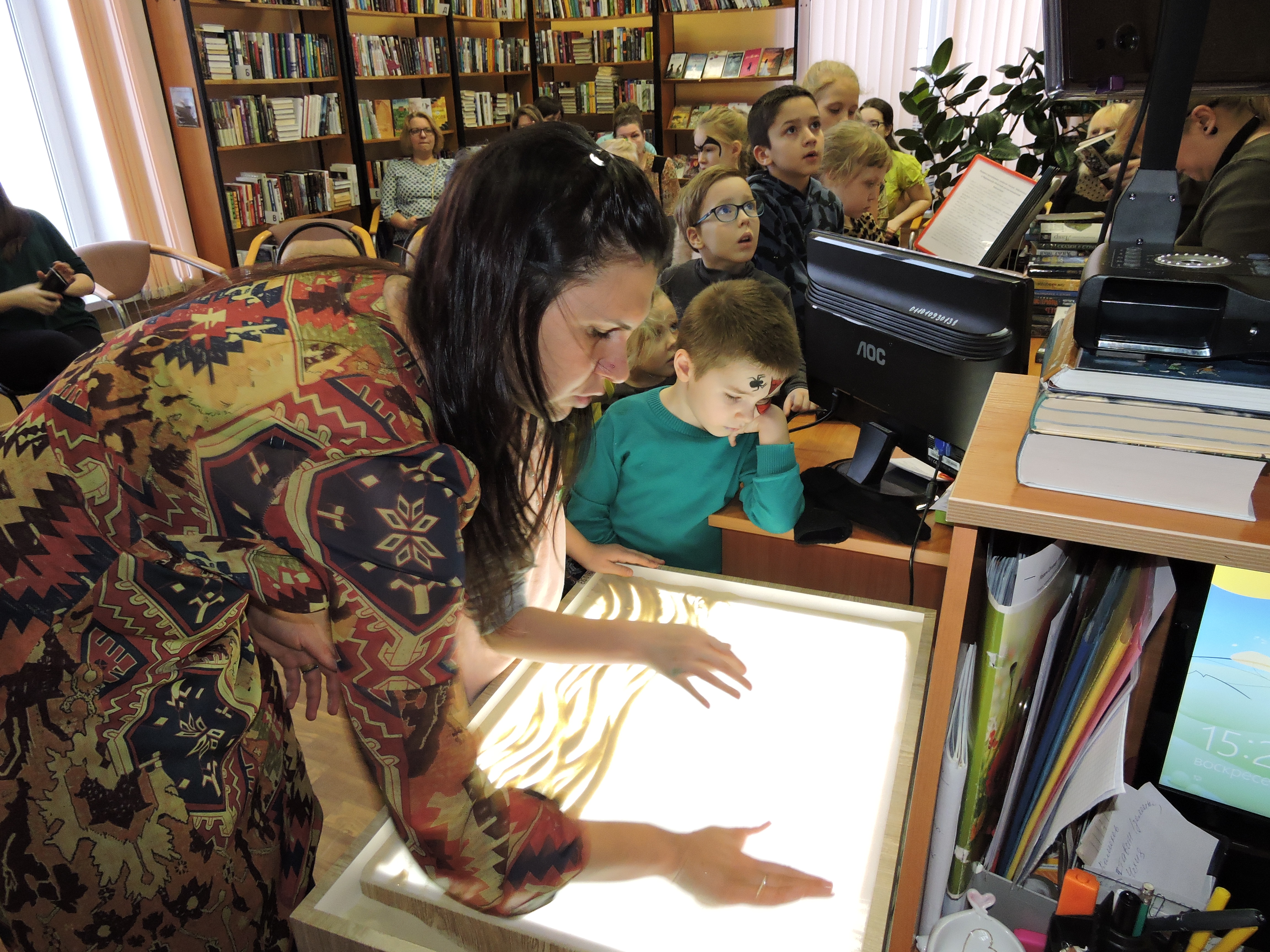 Проявить свои художественные способности и реализовать творческие фантазии гости праздника смогли на мастер-классе от студии песочной анимации.