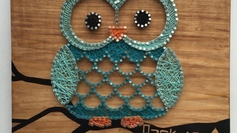 Еще проще String Art – это создание декоративных вещей при помощи гвоздей, вбитых в основу, и ниток, своеобразно на них натянутых. На занятии ребята сделают картину с изображением сказочной совы в предложенной технике. В работе будут использованы нитки пяти цветов: белый, желтый, голубой, розовый, черный, а также кусочки фанеры, размером 21*15 см. Картины в технике String Art просты в изготовлении и принесут массу положительных эмоций своим создателям.