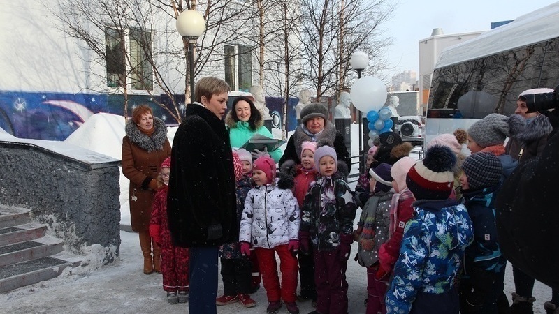 Это подарок Правительства Мурманской области к 50-летнему юбилею библиотеки с целью обеспечить комфорт и безопасность детей. Ключи от автобуса вручила губернатор Мурманской области Марина Васильевна Ковтун.