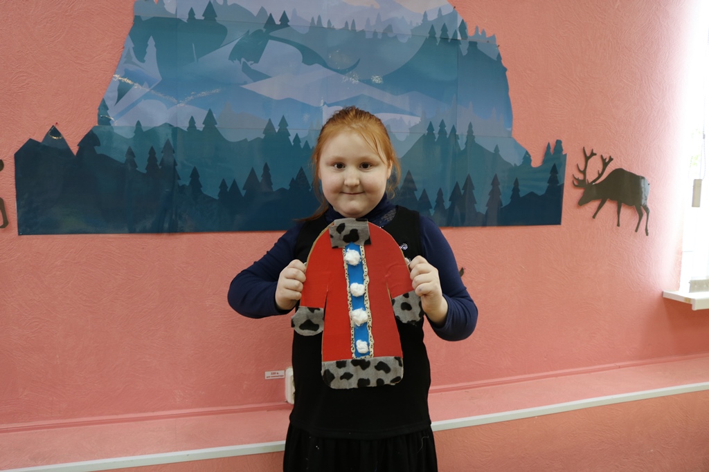 Специалист Центра досуга и творчества города Мурманска Недозорова Руслана Вадимовна провела мастер-класс по созданию малицы из бросовых материалов. Для работы использовали обрезки бумаги, кусочки ткани и меха.
